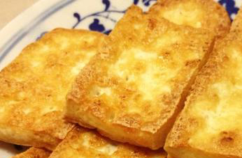 香煎豆腐很好吃,在制作时需要准备豆腐一块,把它切成方块以后用淡盐水浸泡半小时,然后取出去掉水分,再把它放入到干淀粉中走一下,最后包裹上蛋液,平锅中放油加热以后把豆腐块入锅煎制,煎到两面金黄以后取出装盘即可食用。