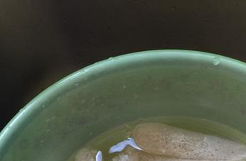 第二步:淘洗粳米,沥干水后放入砂锅中加入水。