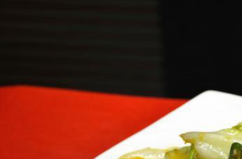 第三步:锅内少许油用辣椒和洋葱爆香,再加入包菜一起翻炒。