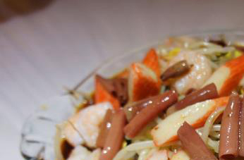 如果不想放入海鲜食材,也可以购买专门的捞拌汁,带有海鲜味的捞拌汁可以让你不用海鲜也做出海鲜味来。