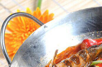 第七步:重新热锅后用葱姜蒜和辣椒先爆香锅子,放入盐后再加入黄骨鱼煸炒。