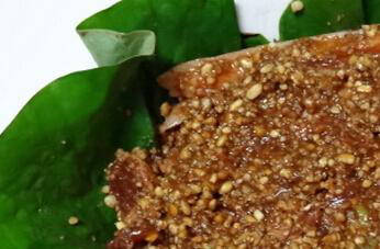 4、用荷叶把肉包好入蒸锅蒸制,大约需要半小时左右就能蒸好,取出以后把荷叶打开,就能闻到诱人的香气,把肉入盘上桌食用即可。