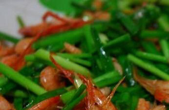 韭菜炒河虾是很好吃的一种做法,而且有良好壮阳功效,在炒制时要把河虾洗净,去掉水分,把韭菜切成段状,起锅放油以后先把河虾放入炒制,炒到八成熟再加入韭菜用大火快炒,加入食用盐和生抽以及鸡精进行调味,炒熟直接出锅就可以。