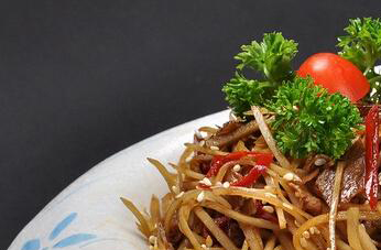 牛蒡也可以炒制以后食用,在炒制时要把牛蒡洗好切成细丝,再把它放在加入白醋的清水中浸泡,这样能避免它氧化发黑,接着要把适量的胡萝卜洗好切成丝状。炒锅放油加热以后放入葱花炒香,再把牛蒡丝和胡萝卜丝一起放入炒制,炒软以后加入香醋和白糖以及适量的食用盐炒匀,出锅装盘即可上桌食用。