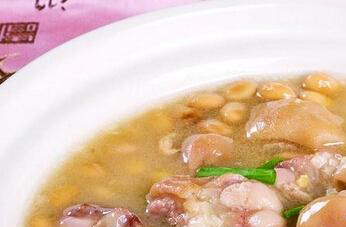 4、猪蹄黄豆花生汤除了可以催乳下奶以外,还能可滋阴养胃,也能润泽皮肤,更能清喉补气,对人类的脾胃失调和咳嗽痰喘以及营养不良等症状都有很好的预防作缓解作用。