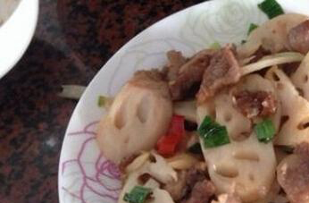莲藕炒着吃也很不错,在炒制以前最好准备五十克瘦肉,加入生抽和料酒腌制一会,在腌制的同时,把莲藕切成片状,用冷水清洗一下了,取出去掉水分,炒锅放油加热后放入葱花炒香,把肉片放入炒到变色,再把藕片放入进去翻炒,两分钟以后加入少量的生抽和食用醋以及盐,再接着炒制三分钟左右,炒匀就能出锅装盘。