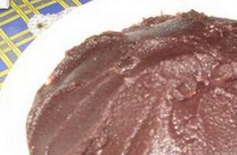 4、取一个干净的纱布把红豆沙和水一起倒在纱布上,用力把水分挤掉,得到红豆沙,然后再取一个无油的锅,把红豆沙和红糖一起放入到锅中炒制,炒匀以后自制的红豆消就做了好的,降温以后把它放在保鲜盒中存入冰箱,可以随吃随取。