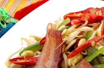 豆芽菜还有多种吃法,像水煮鱼、水煮肉片等名菜,就经常会用豆芽来做锅底,另外豆芽菜还可以与肉片一起炒食,特别是黄豆芽,可以用腊肉炒制,黄豆芽在炒制的过程中会吸收腊肉中的油脂,炒熟以后不但色泽诱人,口感也特别出色,是很多人最爱吃的一种菜式。