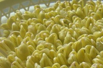 把泡好以后的黄豆放在塑料筐中,让它均匀的铺在底部上,然后再把准备好的纱布或者毛巾盖在上面,每天都要把上面的纱布取下来,给黄豆冲水,冲水以后把水分沥干,把纱布也要用清水洗一下。把发黄豆牙的小筐放在温暖的地方,过五天左右黄豆就全长出四五厘米的小芽,这时想要吃的话就可以取出洗净然后去炒制了。
