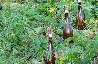 2、把丝瓜藤从距离地面三十厘米的地方剪断,然后把上面的一头插入到准备好的瓶子,把瓶子中再密封起来。