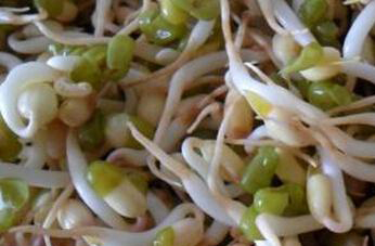 4、过一天以后绿豆就能长出一厘米左右的牙,这时再把豆子冲一次凉水,然后放在一个篦子上面,豆子下压一下重物,每天冲水两到三次,连续管理五到六天以后,豆芽就能长到八九厘米那么长,去掉豆皮以后,就可以直接炒菜食用了。