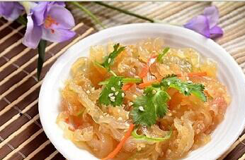 2.海蜇在中医上认为是一种性平、味咸的一种中草药药材,海蜇丝有很好的清热解毒的作用,可以起到很好的化痰软坚的作用,同进海蜇丝可以降压消肿等功效。