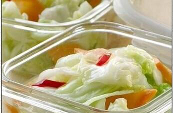 3)再把将卷心菜、胡萝卜、辣椒、蒜头一起放进一个干净没有油的容器里,要是陶的或者是塑料的,再倒进糖醋汁盖紧盖子然后再放入冰箱里冷藏一天以上就要以食用了。