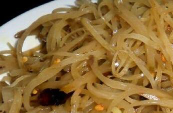 1、把煮好的咸菜疙瘩取出从中间切开,然后再切成细丝,放在清水中浸泡几个小时,取出,把里面的水果挤干。这样能把咸菜中多余的咸味去除掉,也易于它的入味。