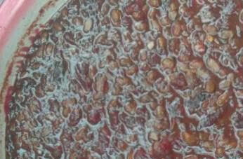 3、把西瓜和黄豆炒匀以后再把准备好的白酒、白糖以及大米的食用盐等调味料加入进去,调匀,把火力调成中小火,慢慢的熬制三个小时左右就能做好,在降温以后就能取出食用,把它们密封起来,也能存放一定的时间,可以随吃随取。