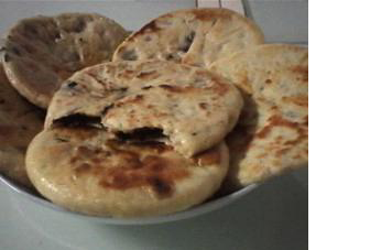4.先用中火给饼两面都上上焦花后,改小火,至饼熟即可。