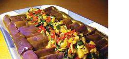幼嫩果实供食用,原产东南亚,公元4~5世纪传入中国。直根系,根深50厘米,横向伸展120厘米,大部分布在30厘米耕作层内。茄子可分为三个变种:(1)圆茄:植株高大、果实大,圆球、扁球或椭圆球形,中国北方栽培较多。(2)长茄:植株长势中等,果实细长棒状,中国南方普遍栽培。(3)矮茄:植株较矮,果实小,卵或长卵。 茄子即矮瓜,含维他命a、b及蛋白质、矿物质,能保护血管,可驱风、散瘀,一年四季皆有供应,是家庭常用蔬菜之一。茄子味甘、性凉,入脾、胃、大肠经;具有清热止血,消肿止痛的功效;用于热毒痈疮、皮肤溃疡、口舌生疮、痔疮下血、便血、衄血等。茄子的吃法,荤素皆宜。既可炒、烧、蒸、煮,也可油炸、凉 拌、做汤,都能烹调出美味可口的菜肴。本菜使用的是长圆形茄子。