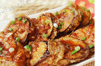 3、茄子切好后要马上挂糊下锅煎,否在暴露在空气中很容易氧化变黑的。。。