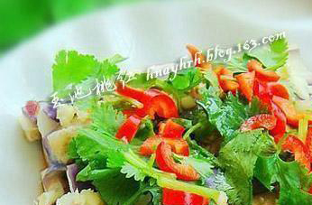 ③两片茄子之间放少量蒜末儿,外面抹一层盐,放入带盖的干净容器中,置冰箱内,随吃随取,很方便。食用时放入味精、滴入香油,捣烂拌匀即可。特点:清凉爽口,蒜味香浓,消炎杀菌,防痢抗癌,增进食欲,有益健康。
