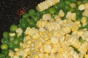 2 锅内放入适量的油放入豌豆3 豌豆翻炒后加入玉米丁4 两者翻炒一下加入适量的盐5 煸炒后加入清水进行焖3分钟这样就可以的了豌豆粒多食会发生腹胀,故不宜长期大量食用。