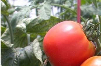 3、玛莉:植株高性,叶色较浓,抗晚疫病、叶徽病。每果穗可多达30果左右;双干整枝时,每株结350果左右为丰收。果实呈长椭圆型,果色红匀艳丽,果重约30克左右,糖度在8.5左右,易采收,不易裂果,果实较硬,耐贮运。