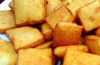 豌豆粉是云南人十分喜爱的杂粮制品。是用干豌豆粒,磨瓣去皮,用水泡发后,掺水磨成浆,经过滤、熬者成糊,冷却后凝回而成。质地细腻滑嫩,色泽姜黄,口感有豌豆的特殊芳香,经刀功成形后烹调可热吃或凉吃。豌豆性味甘,微寒。具有补中益气,解毒利用的功效。适用于小便不畅,下腹胀满,消渴,妇人乳闭等症。