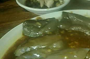 选用7月间采收的肉厚、无籽、形状好的鲜嫩圆茄子,去除烂果和伤果。将茄子经过水泡磨皮后,放进沸水中煮制,煮熟但用手抓不烂时去浮水,投进甜酱中进行酱制。成品油亮晶莹,质地柔嫩,酱香浓郁。