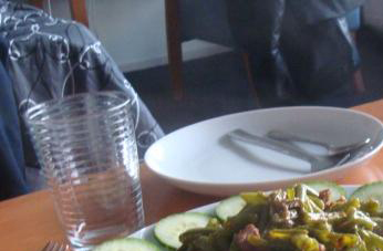 2、腌制肉片的空档,把扁豆洗净沥干;斜切成小段。