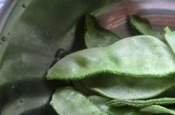 3.煎培根的油不要倒掉,用来炒扁豆,如果不够可以加点色拉油.烧热油,放扁豆进 去煸炒,然后放少许水煮两三分钟至扁豆熟透.