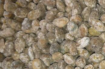 3、把蒸好的黄豆取出,放入到面粉中过一下,让每个黄豆上都有面粉包裹。接下来就要把包好面粉的黄粉进行发酵,等黄豆表面长出绿色的毛毛以后才可以取出放在阳江下晒制。