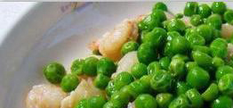 2. 青豆和胡萝卜丁洗净,在开水中氽过,用冷水过凉待用;葱切段;用鸡汤100毫升、味精、湿淀粉10克(淀粉5克加水5克)兑成芡汁;