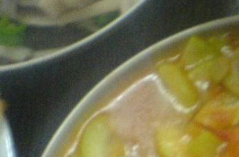 3.锅中放入油,加热到5成,放入冬瓜块,慢火煎炸成金黄色。然后加入高汤,小火炖煮10分钟。