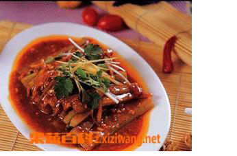 色泽红亮,麻辣柔软,香鲜味美。