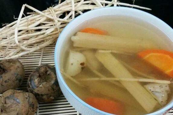 2、茅根用清水洗净以后入锅,再加入准备好的马蹄和甜玉米,放入适量清水和冰糖加热煮开后再煮半小时,随后才能把切好的胡萝卜入锅一起煮,继续煮半小时左右锅中的马蹄水就能煮好,取出降温以后可以直接喝,也能把它放到冰箱中冷藏几小时以后再喝,那时茅根水的滋味会更加诱人。