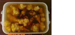 2、把晾好的洋姜放在保鲜盒里。把晾凉的调料水倒入保鲜盒。