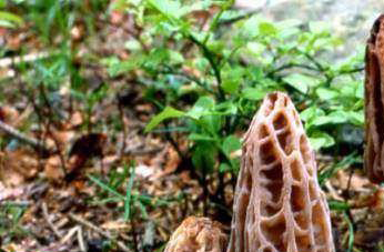 为真菌植物门真菌羊肚菌 Morchekkaescukenta(L.)Pers。尖顶羊肚菌 M.conicapers.的子实体。