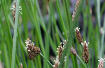 (二)分蘖与分株:7月底~8月初移植的荠苗,3~5天返青后,发芽茎顶端的保质茎,向上抽生叶状茎,经不断分蘖,形成母株丛。与此同时其侧芽向四周发生若干根匍匐茎,伸先3~4节10~15㎝后,其顶端肉质茎的顶芽,继而向上萌生叶状茎,连续分蘖,又形成新的分株。如此反复地分株和分蘖,株丛随之逐渐扩大,叶状茎数直线上升,一株地上茎数可扩大到300~400根。气温在25~30℃时,分蘖分株发生最快。进入9月份后,气温逐渐下降,光合产物的积累量则逐渐增多,匍匐茎的生长由水平方向转而朝土下斜向生长,俗称“下带”。10月上旬以后,不再产生叶状茎,此时所有的匍匐茎先端开始膨大,球茎开始形成。 荸荠的产量取决于球茎的数量和大小,而后者又是由分株的次数及地上茎的数量和质量决定的,正如前述,气温在25~30℃时分蘖分株发生最快,一个分株约10~15天发一档分株。在我地一般可发生分株2~3档,多的可达5~6档,全株共有分株30~40株。9月下旬以后,气温下降明显,不再发生分蘖。因此,争取在适宜气温下,取得一定合理分株数,保证地上叶状茎的数量和质量,荸荠最好要在7月底移栽完,最晚的移植也不能迟于立秋。