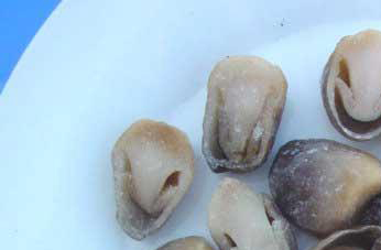 采收方法,一手按住菇体周围的培养料,另一只手握住菇体左右旋转,轻轻采下,不要用力猛拔;去掉子实体上所粘带的培养料及其它杂质,用不锈钢小刀削去基部的草和泥土。草菇生长后期开伞迅速,要及时采收,并及时加工。