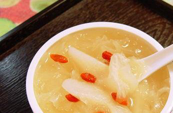止咳润肺 患有支气管炎、支气管炎扩张、肺结核的病人在夏季容易犯病而发生咳嗽,可服用银耳雪梨羹进行治疗。取银耳6克、雪梨1个、冰糖15克,将银耳泡发后炖至汤稠,再将雪梨去皮核,切片后加到汤内煮熟再加入冰糖即成。此方对大便燥结者也有较好疗效。