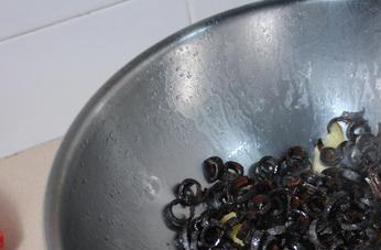 (2)用手将木耳料袋上的牛皮包按散,呈凹陷状。