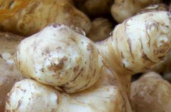 每100克块茎中含水分79.8克,粗蛋白0.1克,脂肪0.1克,碳水化合物16.6克,纤维0.6克,灰分2.8克,钙49毫克,磷119毫克,铁8.4毫克,维生素b10.13毫克,维生素b20.06毫克,尼克酸0.6毫克,维生素c6毫克,并含丰富的菊糖、多缩戊糖、淀粉等物质。性味甘、平、无毒。有利水去湿、和中益胃及具清热解毒的作用,为利尿剂。