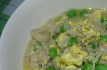 配料:适量油 适量盐 适量生粉 适量生抽 适量葱末1 食材:豌豆洗净沥干水