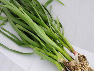 蒜白较绿,茎部微微隆起,有的地方称它为蒜苗,是大蒜幼苗发育到一定时期的青苗。它具有蒜的香辣味道,但无蒜的刺激性,常被作为蔬菜烹制。川菜制作回锅肉时,它便是必不可少的配菜。