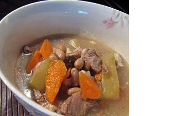 佛手瓜4个,去皮,猪蹍1斤,红衣花生3/4杯,洗净,红萝卜2根,去皮,水约2公升