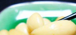 3、最后一步是配置调料的过程。将清水烧开,加入醋和淀粉。待其凉透之后直接浇在大蒜上面就好了。