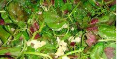 3、把锅中放少量的油,加热以后加入洗好的苋菜翻炒,等苋菜变软以后加入少量的盐调匀,最后加入制好的蒜容和香油与味精进行调味就可以出锅装盘了。