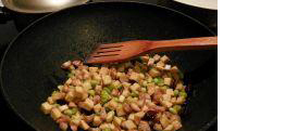 4.再将利马豆煸干水,煸熟;