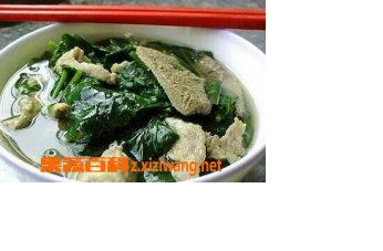 1、用料:猪肝一百克,瘦肉两百克,珍珠菜两百克,盐、味精少许。