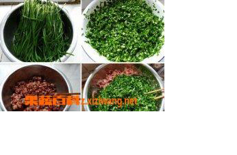 2、韭菜饺子馅如果想吃肉馅的,那么就要把韭菜洗净以后,沥干水分,然后切杨细末放在盆子中,再加入一些食用盐,用筷子调匀,过三十分钟左右,韭菜中的水分就会被腌出来,这时把盆中的水分倒掉,再进行调制。