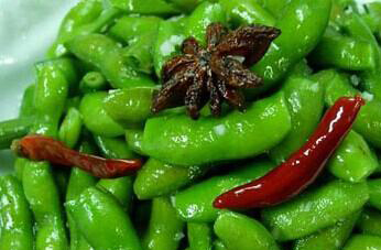 新鲜毛豆一千克,姜片十克,八角、花椒、桂皮、小辣椒以及茴香等香料可以根据自己的条件准备,盐、白糖和二锅头都要准备一点,另外还要有少量的鸡精。
